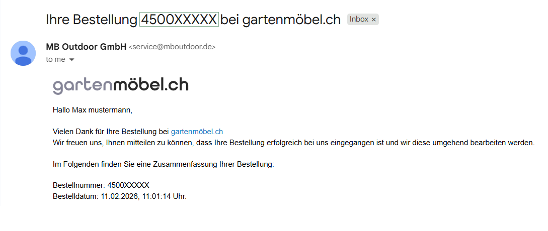 1.2 Verantwortlicher für die Datenverarbeitung auf dieser Website im Sinne des Schweizer Datenschutzgesetzes (DSG) ist MB Outdoor GmbH, Bruchweg 18, 46509 Xanten, Deutschland, Tel.: 02801-3713111, E-Mail: service@gartenmoebel.de. Der für die Verarbeitung von personenbezogenen Daten Verantwortliche ist diejenige natürliche oder juristische Person, die allein oder gemeinsam mit anderen über die Zwecke und Mittel der Verarbeitung von personenbezogenen Daten entscheidet.
